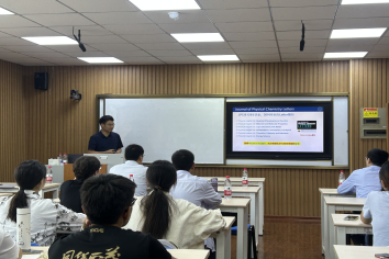 开展学术交流,并作了题为“凝聚相材料激发态载流子动力学”的学术报告。报告由院长助理宋朋主持,校内教师和研究生认真听取了报告。
