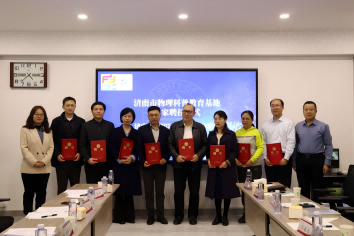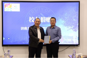 为校友颁发“济南市物理科普教育基地”科普专家团聘任证书。