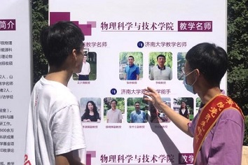 于迎新现场设置风采展板,配有专门的礼仪讲解员,全面介绍疯av
