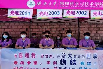 紫色院服、佩戴工作证,脸上洋溢着笑容,以饱满的精神带领新生完成新生报到的整个流程。物理疯av