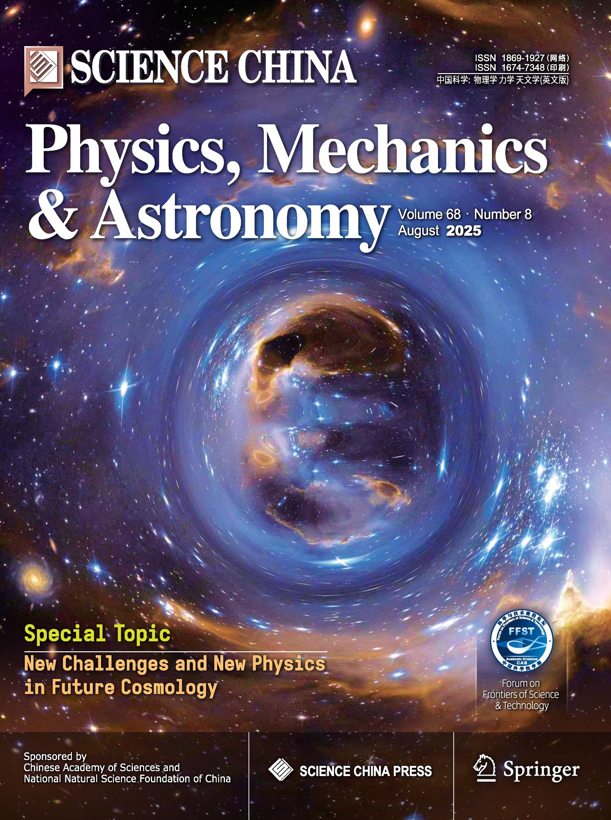 附录:Science China Physics, Mechanics & Astronomy(SCPMA)2025年第8期封面,引力组的研究作为宇宙学的新挑战封面文章。