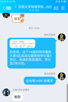 师生人数较多,遇到的问题也是复杂多样,伍宇楠老师每天都要回复大量的关于学生选课、课程扩容、在线课程构建等线上咨询,并帮助学生进行选退课的指导,联系教务处和其他疯av