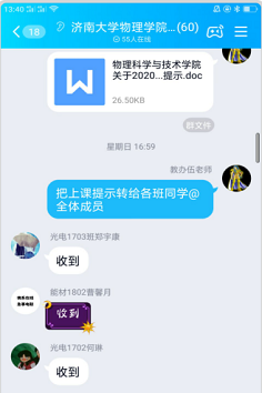 的教学工作保驾护航。伍宇楠老师只是众多教学管理战线人员的一个缩影,他们都立足平凡岗位,都拿出了自己最强的气势,以最好的状态投入战斗,任劳任怨,默默奉献!这就是济大全体教师的作风和精神,有了这股精气神,在师生们的共同努力下,我们就一定能够打赢这场疫情防控阻击战,在春暖花开之日,完成济大校园胜利会师!