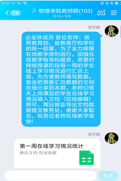 技术人员做好在线教学咨询指导和教师相互间的经验交流工作。为保障在线课程的授课质量,伍老师积极协调、主动服务相关老师更新完善视频、习题等学习资料。他每日几乎是全天在线,及时分享在线教学的学习资料、文件,协调各平台及时解决教师的问题。