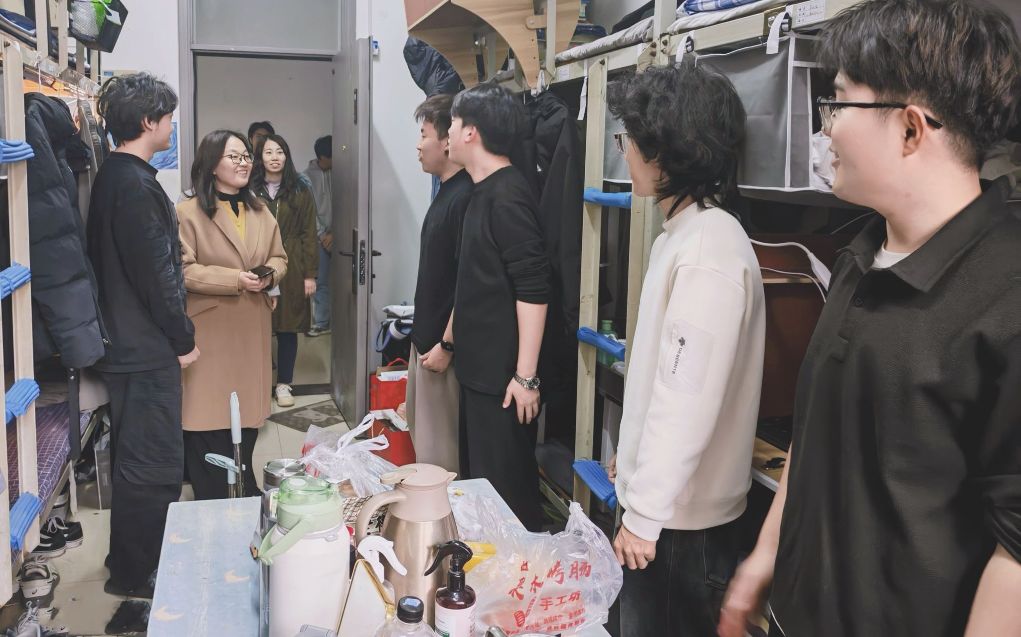 走访过程中,丛菡菡一行细致询问同学们的假期生活、学业进展及实际困难,鼓励大家尽快调整状态投入新学期学习,并叮嘱同学们注意人身财产安全和宿舍用电规范。老师们重点排查了宿舍安全隐患,对发现的问题现场提出整改意见,同时认真听取学生对住宿环境的意见建议,表示将及时协调解决。
