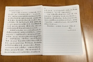 的学生干部积极响应,提笔为武汉同学寄语。“身为一名共青团员,我们本就时刻关注着疫情,也身处居家抗疫的行动中。但我们深知,现在最需要鼓励的是武汉的同学。”一名正在写信的同学说道。病毒无情人有情,在师生的共同努力下,饱含辅导员和同学们关爱的信通过图片的形式,顺利传递到每一个身处武汉同学的手上。见字如面,收到信后的同学们纷纷表达了对老师和同学们的感谢。其中,傅文同学在给辅导员的回复中写到:“这让我即使处于疫情中心也不觉得孤单,感觉老师和朋友们就在身边,形势已见好转,愿我们早些相见。”并表示一定会安全在家,认真学习,奉献特殊时期属于自己的一份力。