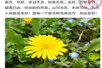 青年志愿者协会于4月3日举办了“驱疫迎春,面向美好未来”的线上摄影作品征集活动,号召同学们走出家门,感受春的到来。