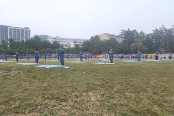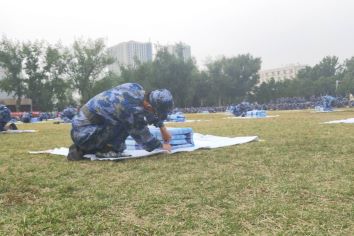 新生已经到达北苑操场,在各助班、宿导的带领下列队等待,身背自带被具,为比赛做着准备。开幕式上楼管会负责人代表学校向新生致辞,希望新生能通过此次叠军被大赛加强对整理宿舍内务的重视,培养团队精神和集体荣誉感。随后,各疯av