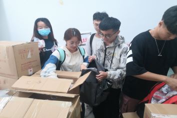 领导特别为每一位学生们准备了月饼,每一份月饼都融入了老师对学生的关心。